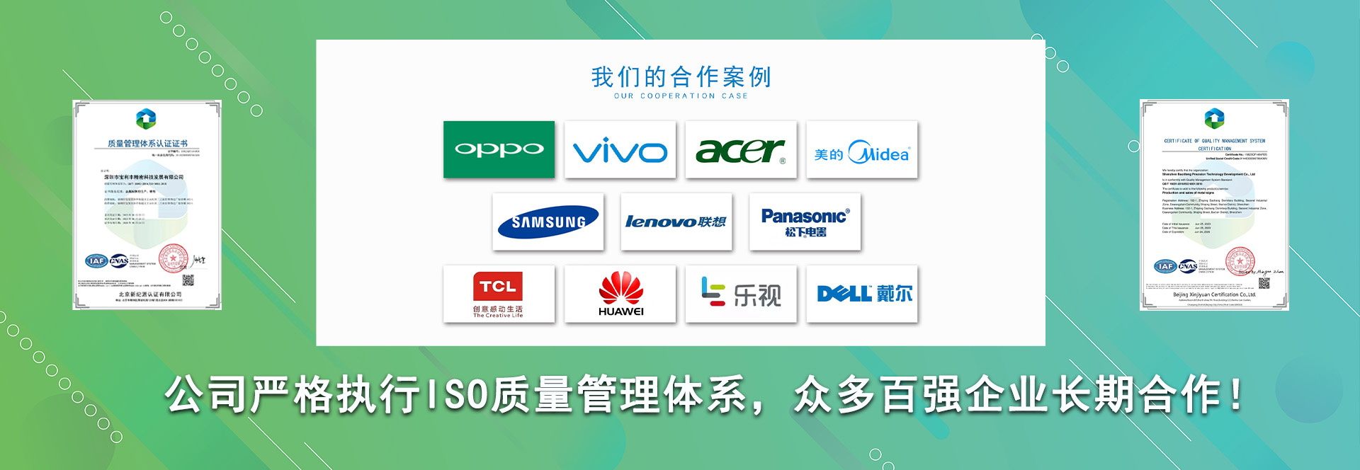 本公司與一些知名的企業(yè)都有合作,如:富士康、西鳳酒、茅臺、五糧液、恒旭包裝、聯(lián)想、華為、志高、建力高爾夫、東驊電腦、長城電腦等,我們真誠希望與您合作、為您服務(wù)。